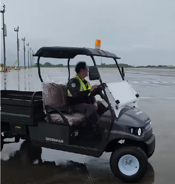 Electric work vehicles, operating in the wind and rain of airport docks, can meet the needs of carrying goods through towing hooks, help customers improve efficiency in work, and showcase the strong power of the entire vehicle.